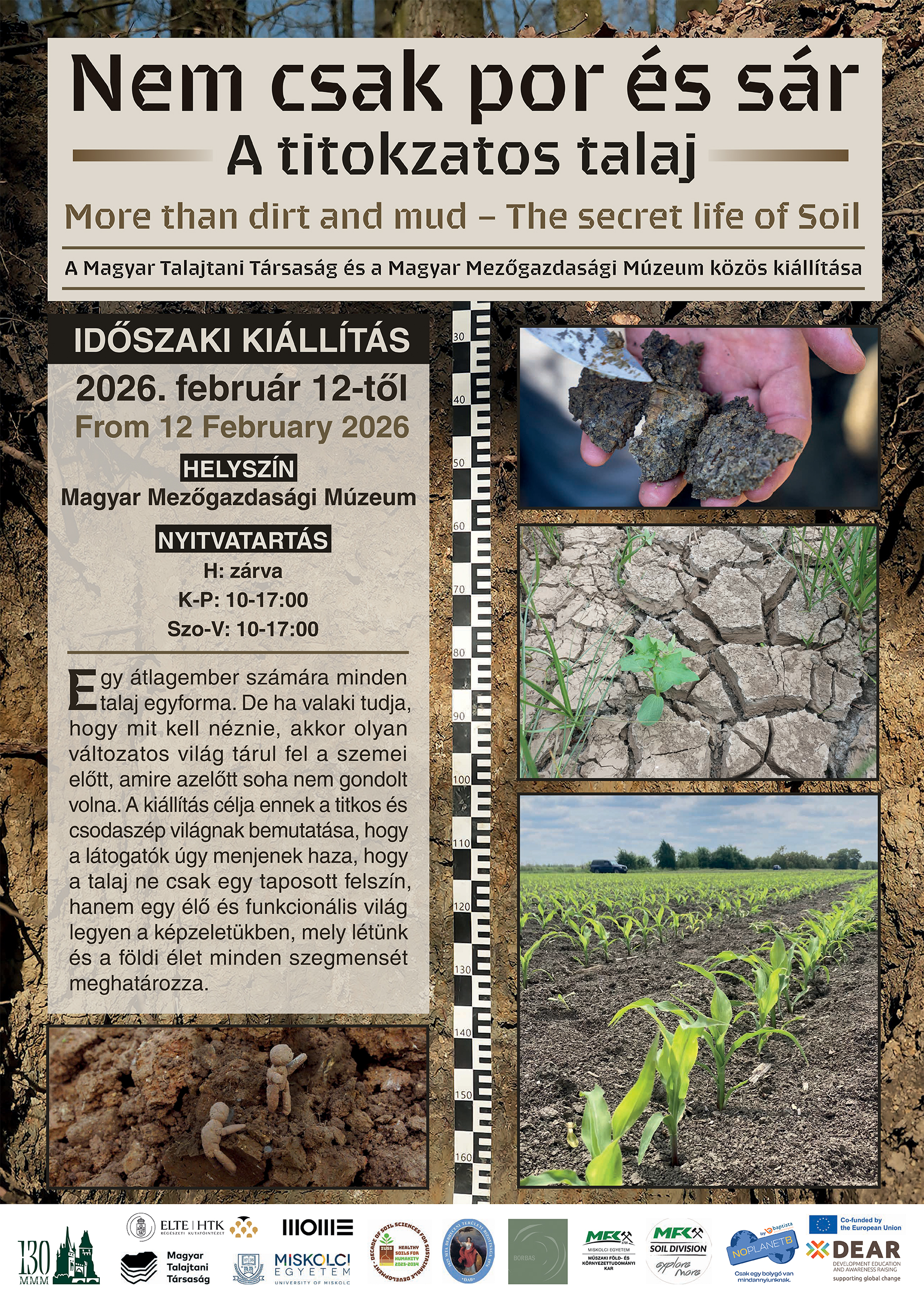A kiállítás a talajok sokszínűségét és jelentőségét bemutatva izgalmas szakmai és művészeti élményt nyújt minden látogatónak.